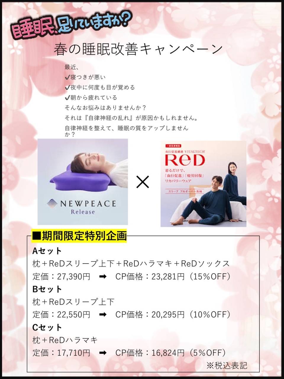 本日は、3月限定の睡眠改善キャンペーンのご案内です。